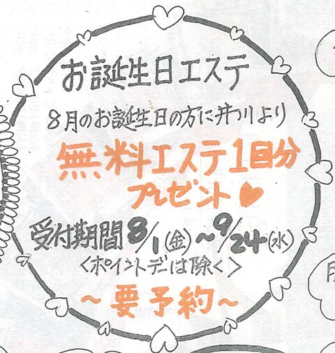 8月のエステ